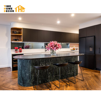Modüler Modern tasarımlar L şekli lüks mutfak mobilyası bütün Set ahşap mutfak dolabı ile siyah mermer ada Villa için
